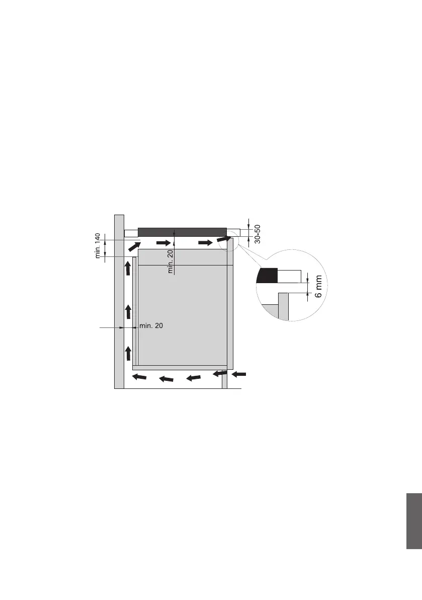 - There must be an opening with a height of no less than 140 mm along the entire width