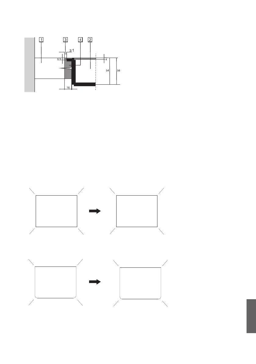 Observe the radii of glass edges (R10, R2) when making the cut-out.