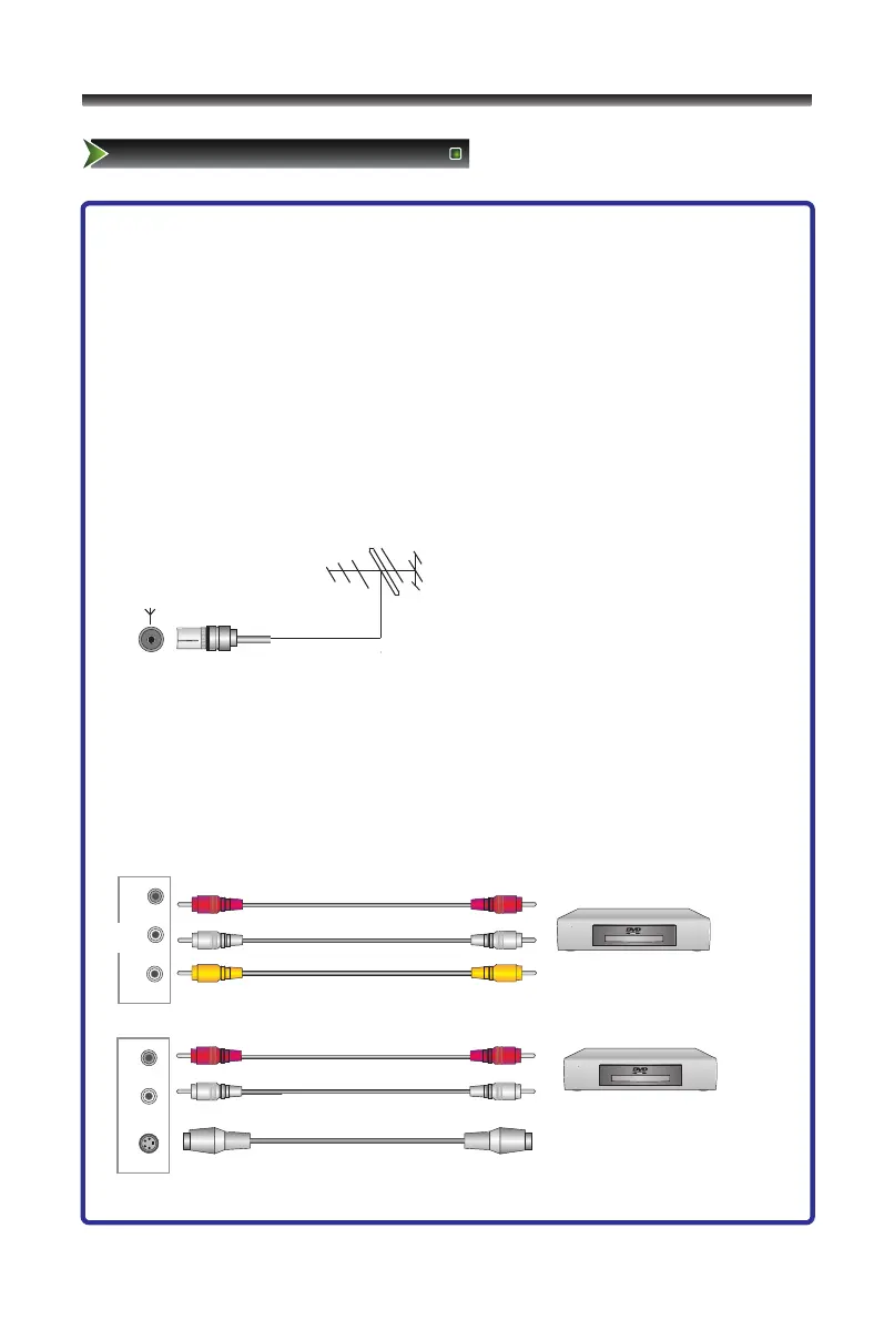1. Connect to broadcast antenna or the cable TV