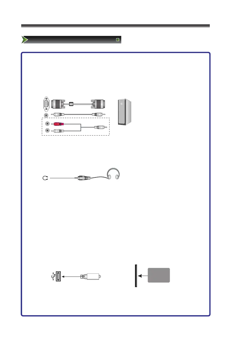 - Connect the D- Sub cable to “VGA” on the rear of your set and the other end to the
