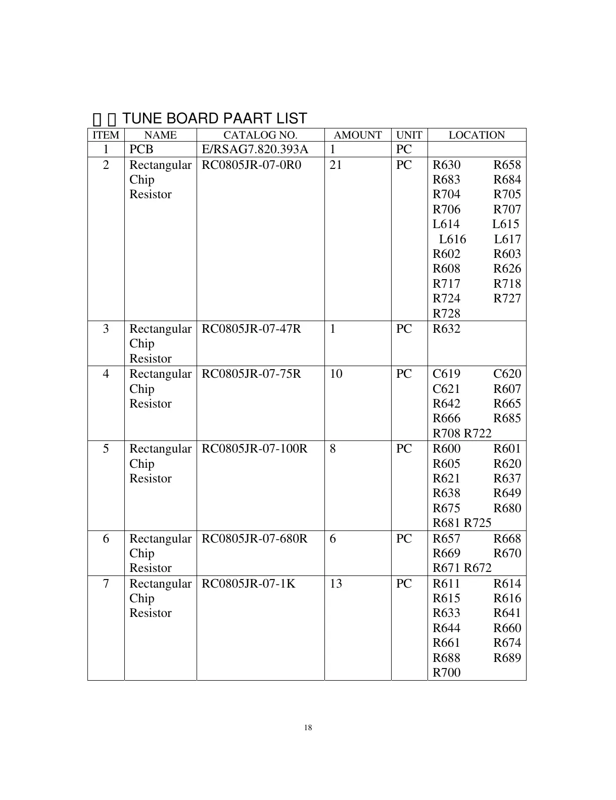 TUNE BOARD PAART LIST