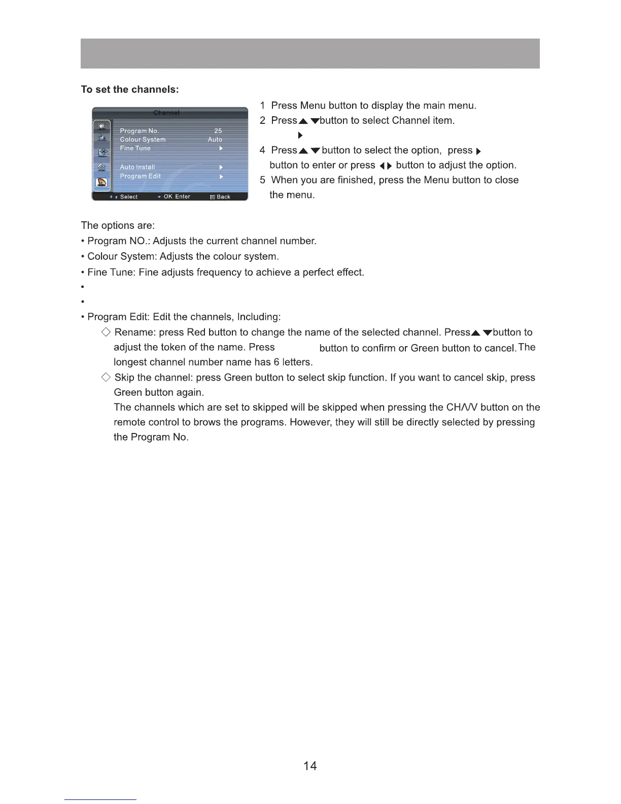 3.Press button to enter Channel menu.