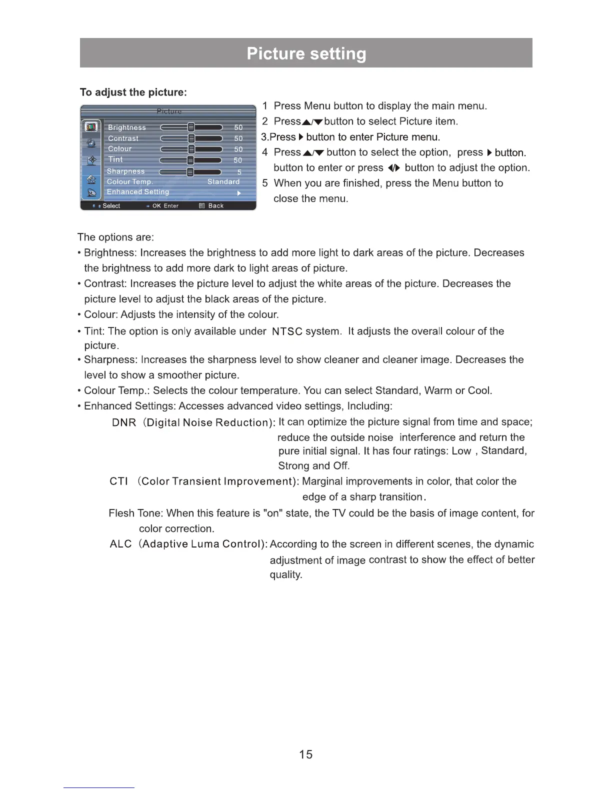 Hisense LCD42V68PCA - Picture setting; Adjusting Picture Parameters