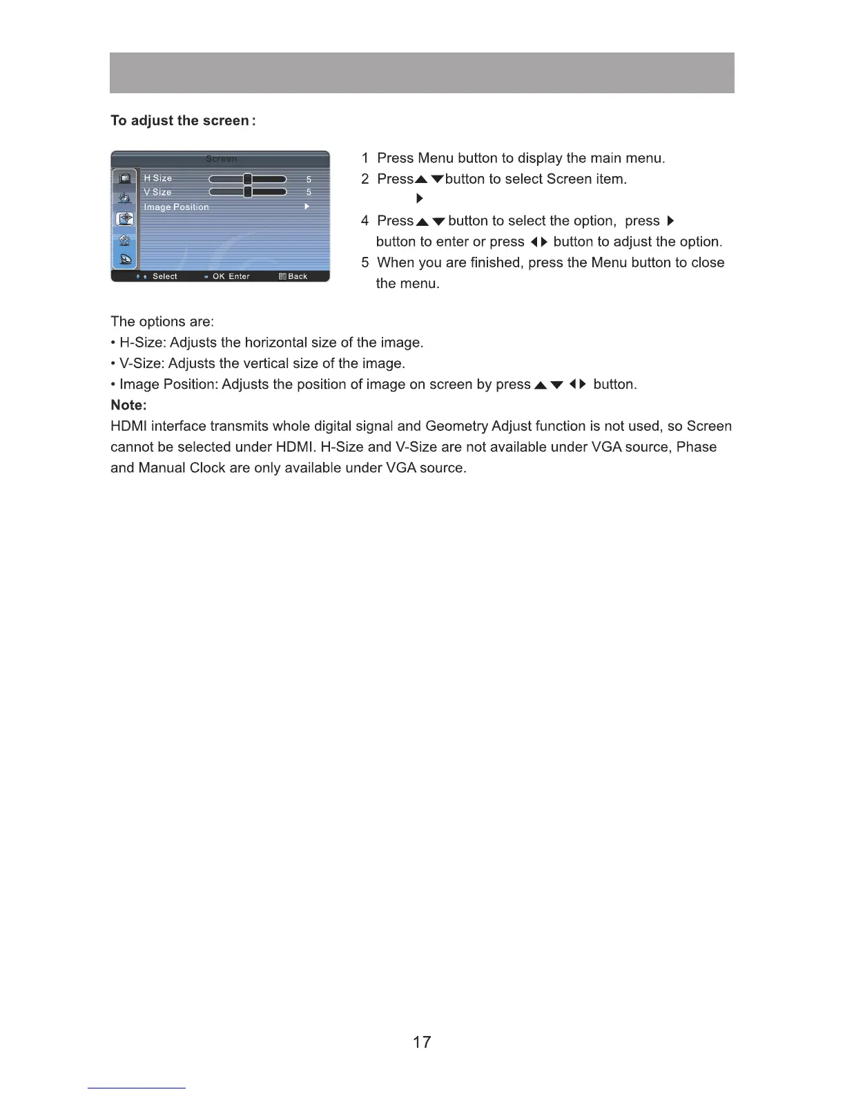 Hisense LCD42V68PCA - Screen setting; Adjusting Screen Parameters