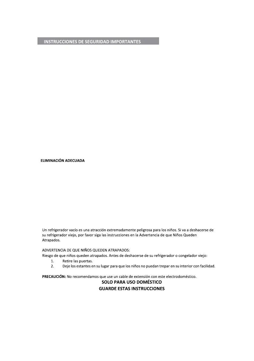 PELIGRO: Riesgo de atrapamiento para niños. Antes de eliminar de su viejo refrigerador