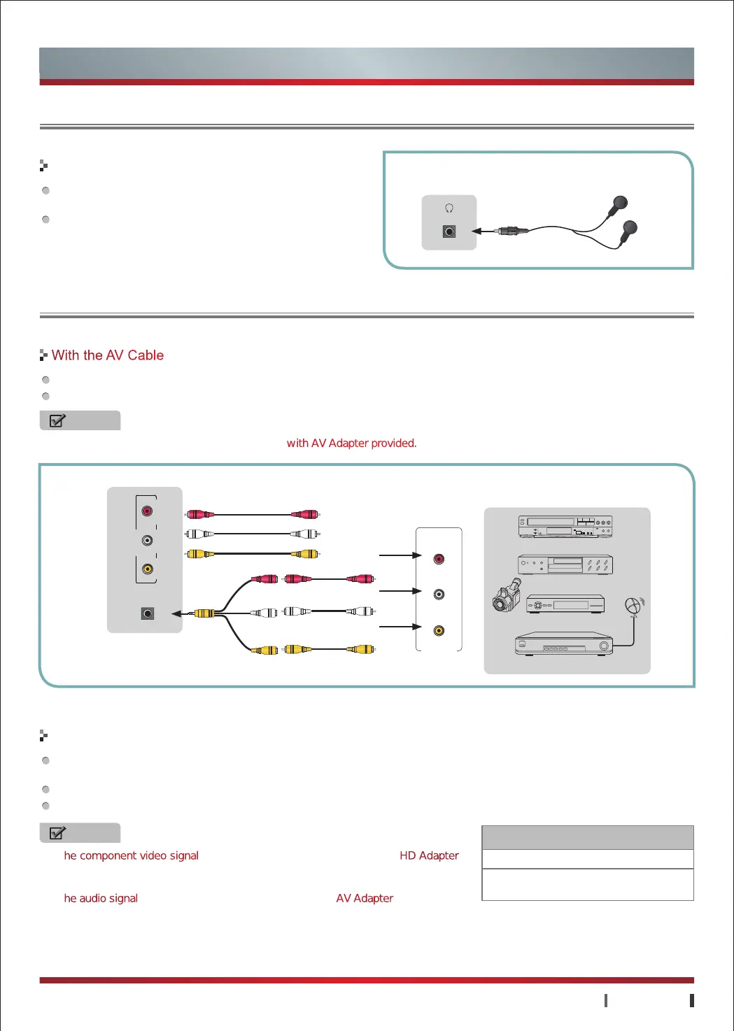 The component video signal are connected to external devices with HD Adapter