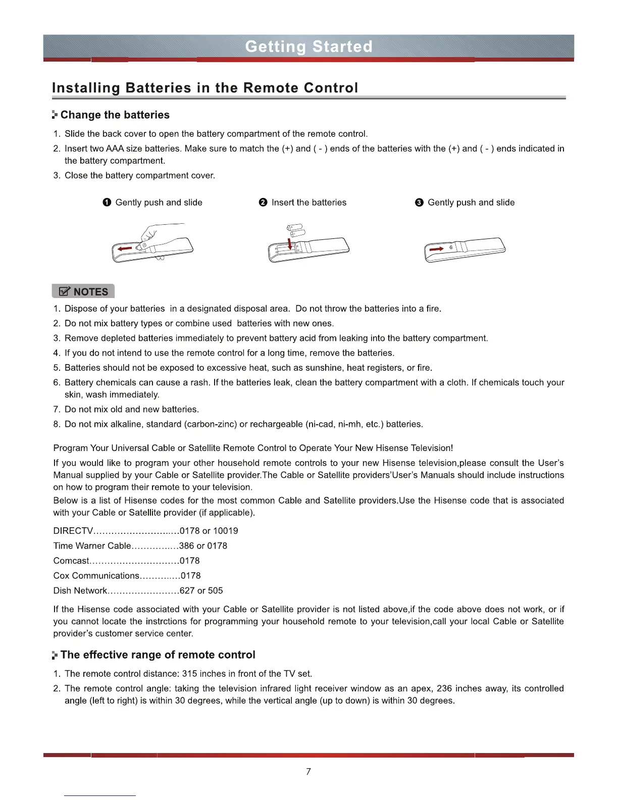 Hisense LTDN46V86US - Getting Started; Installing Batteries in the Remote Control
