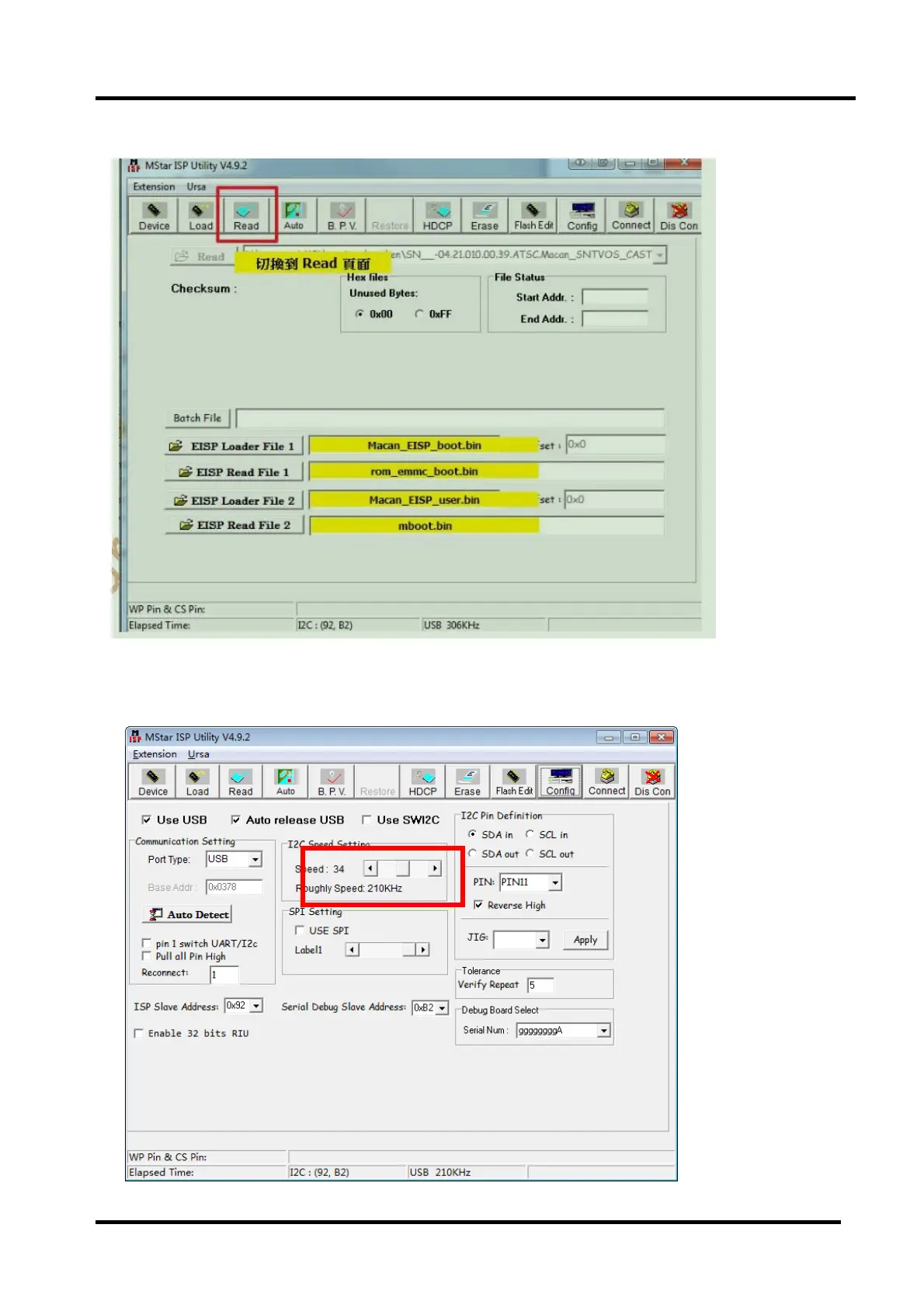 Click “Config” button, “I2C speed setting”choose around 30 ,roughly speed around 200KHz,