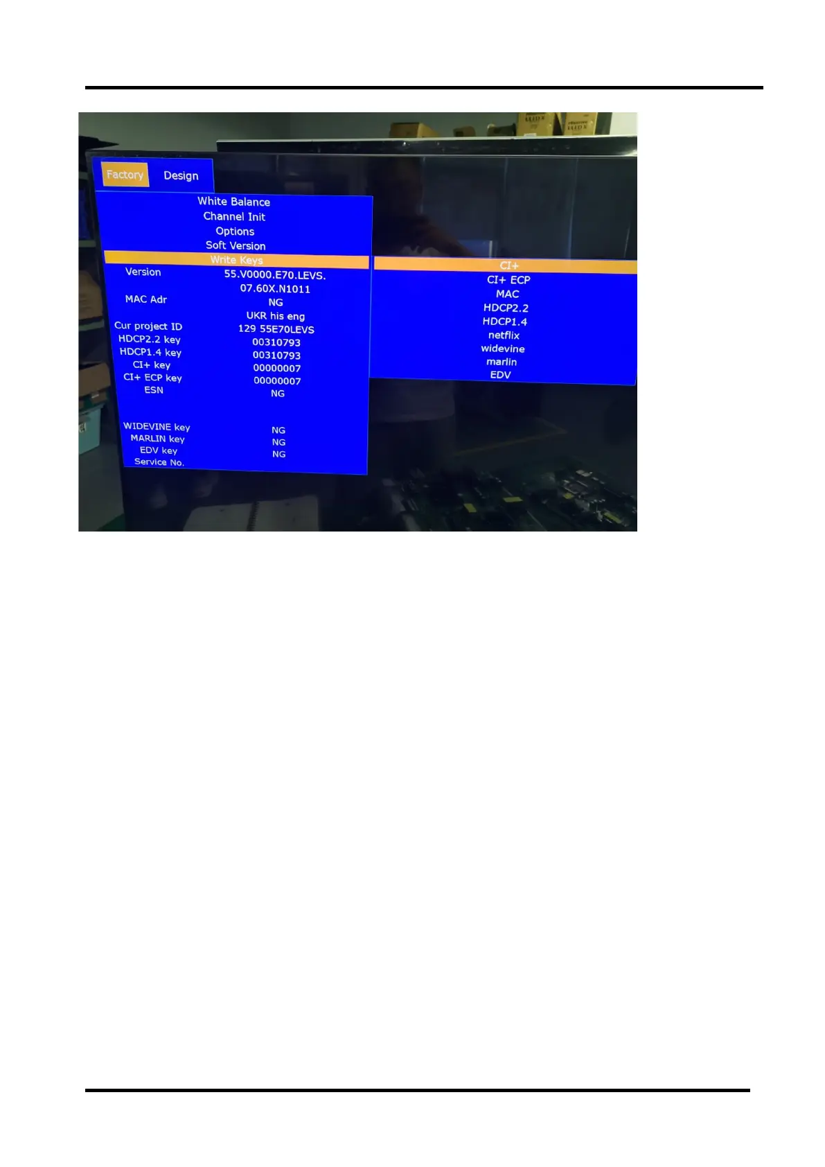 Check whether the Key information under the current Version is OK, if appears “NG” or such as following