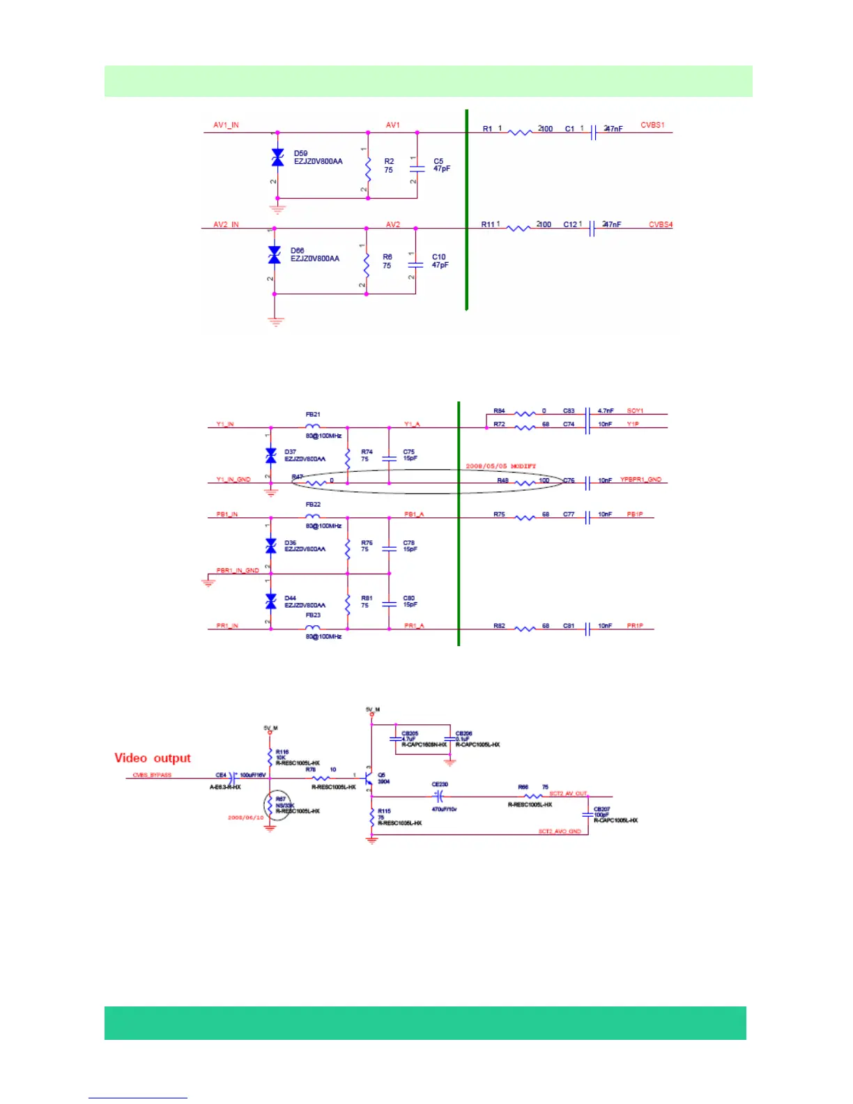AV output send out by the No.11 feet of U34, through the below diagram, finally come out by P4.