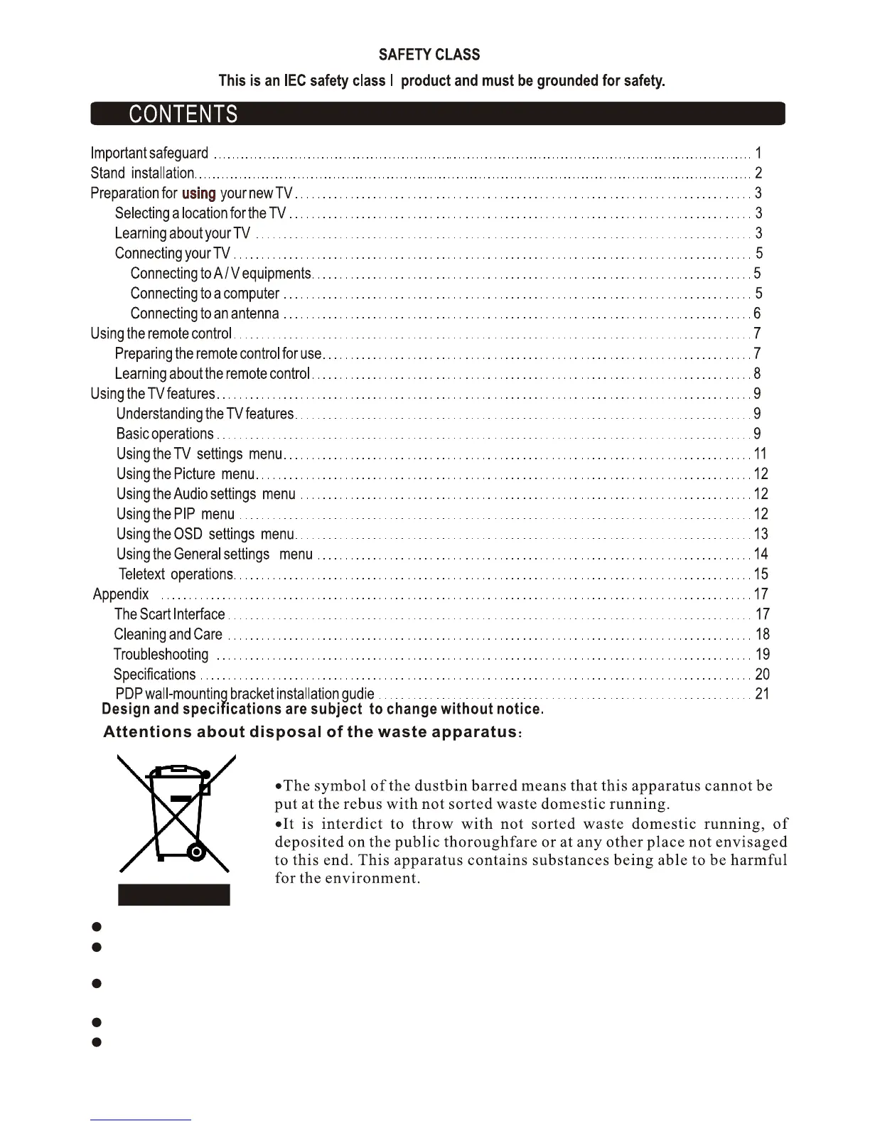 This apparatus must be thrown only to the places envisaged. Inform near your authority to know the