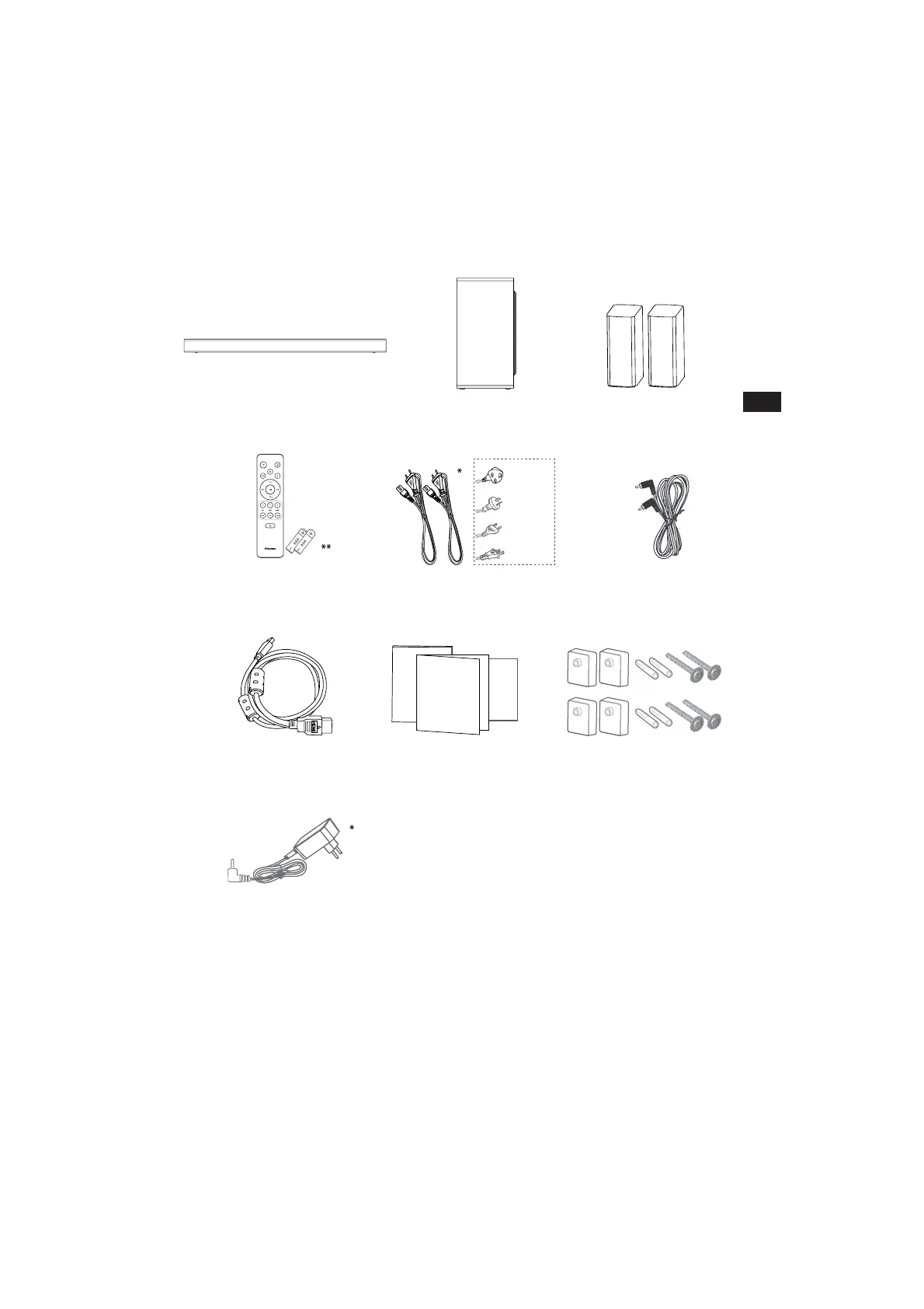 • La cantidad de cable de alimentación y el tipo de enchufe varían según la región. ** Los accesorios
