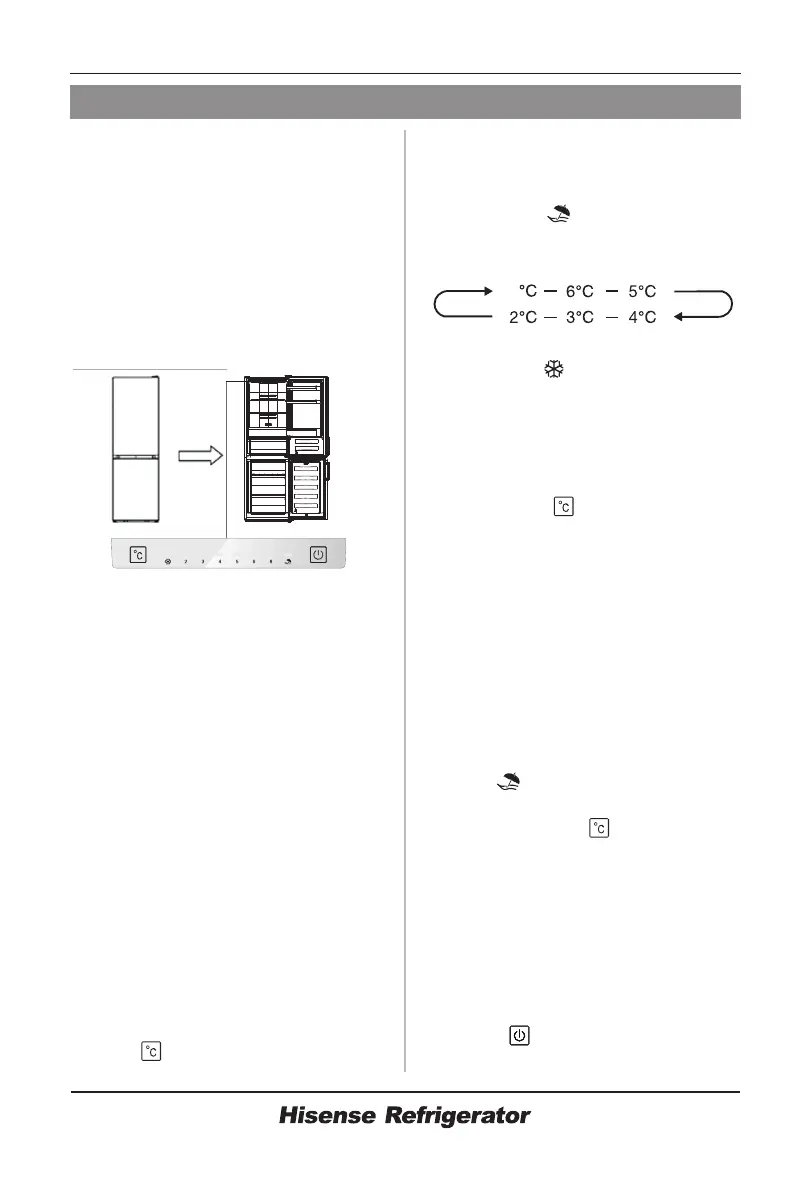 Press “ ” to set fridge temperature