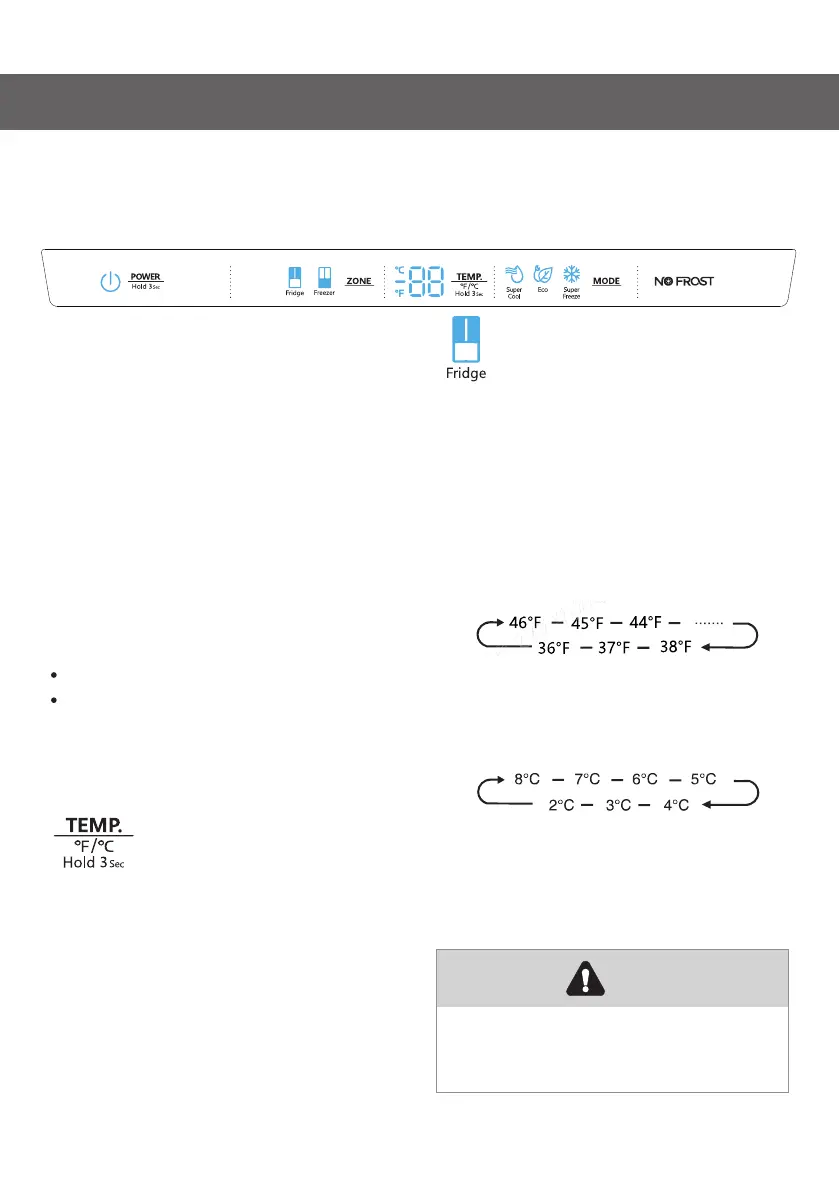 “TEMP.” button repeatedly to cycle