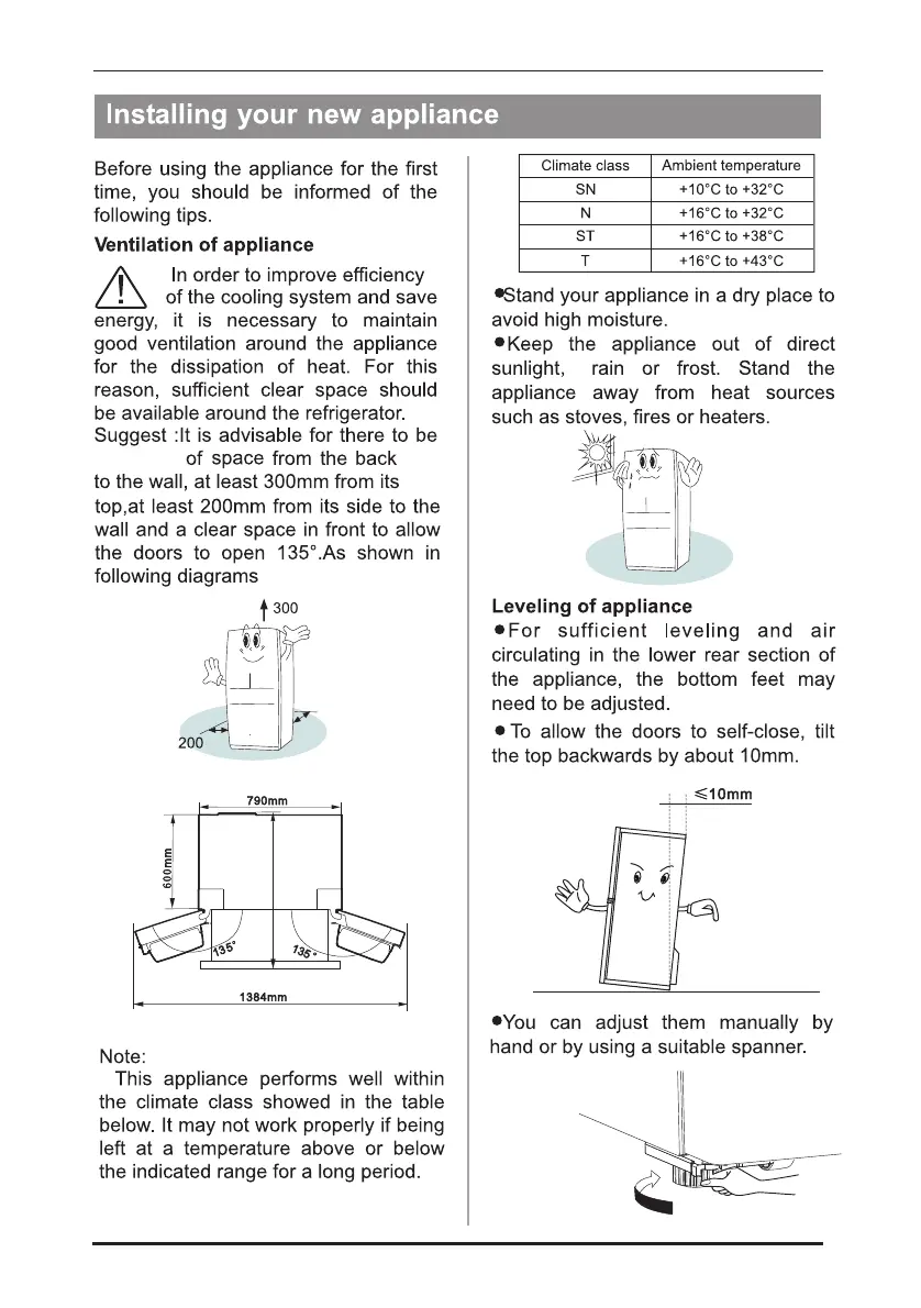 Hisense RF540N4WFE - Installing Your New Appliance; Ventilation and Leveling Requirements