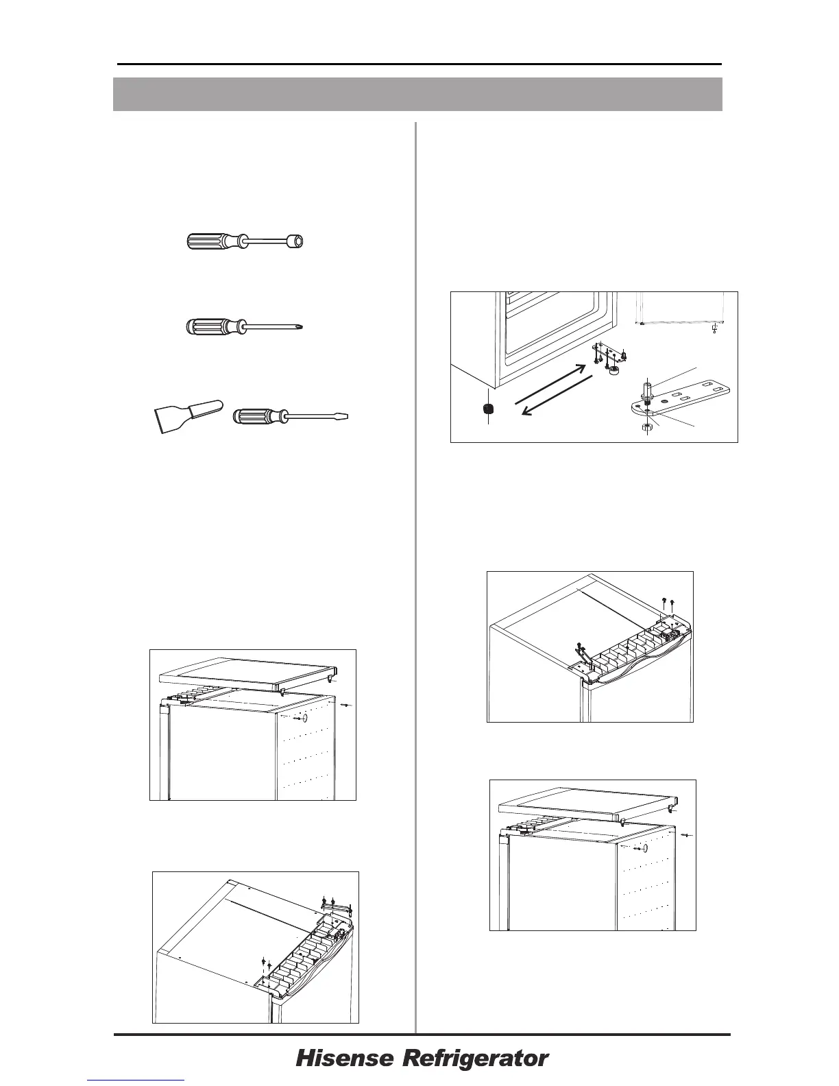 adjustable feet and remove the bottom hinge