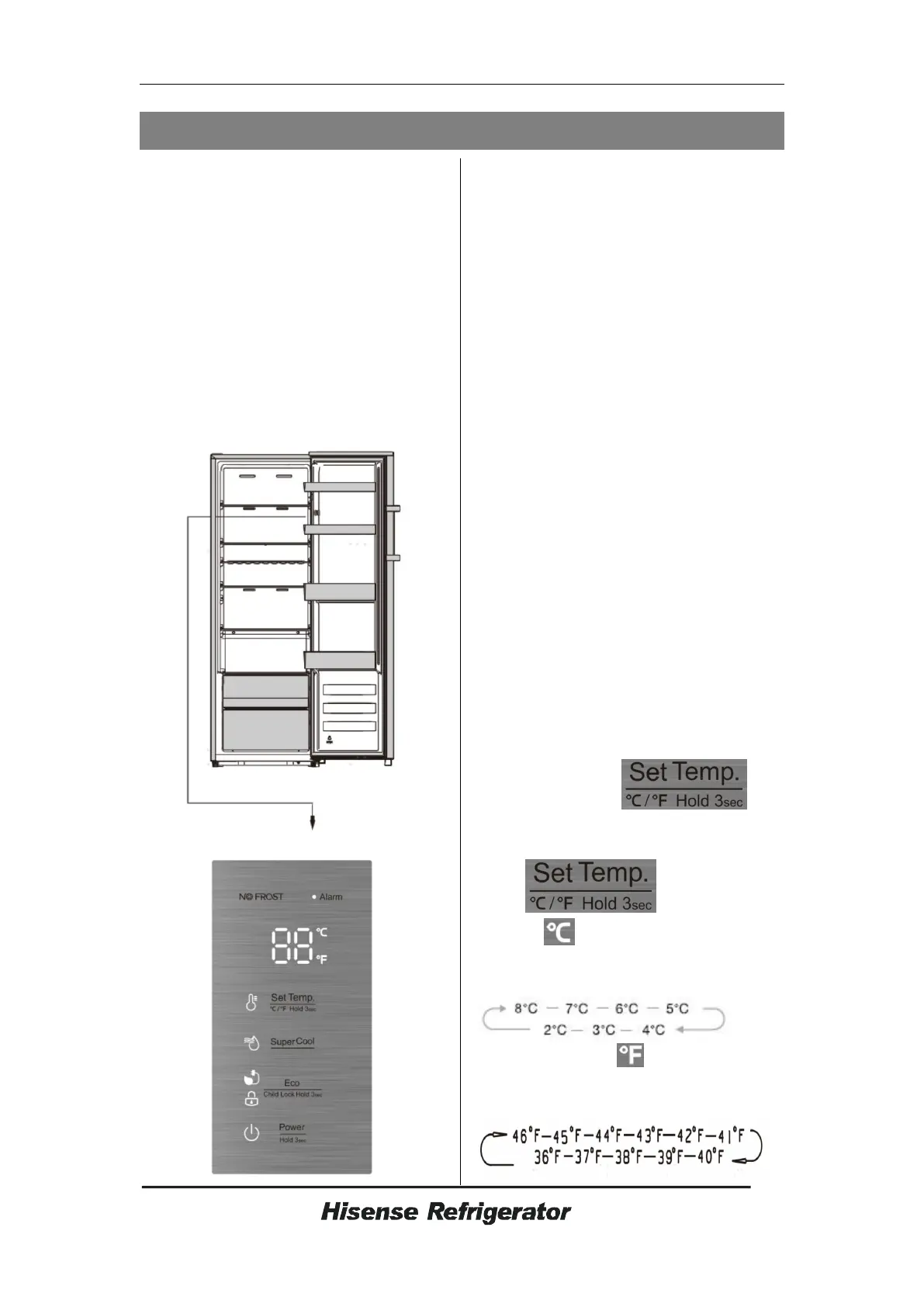 zwischen 46°F und 36°F eingestellt.