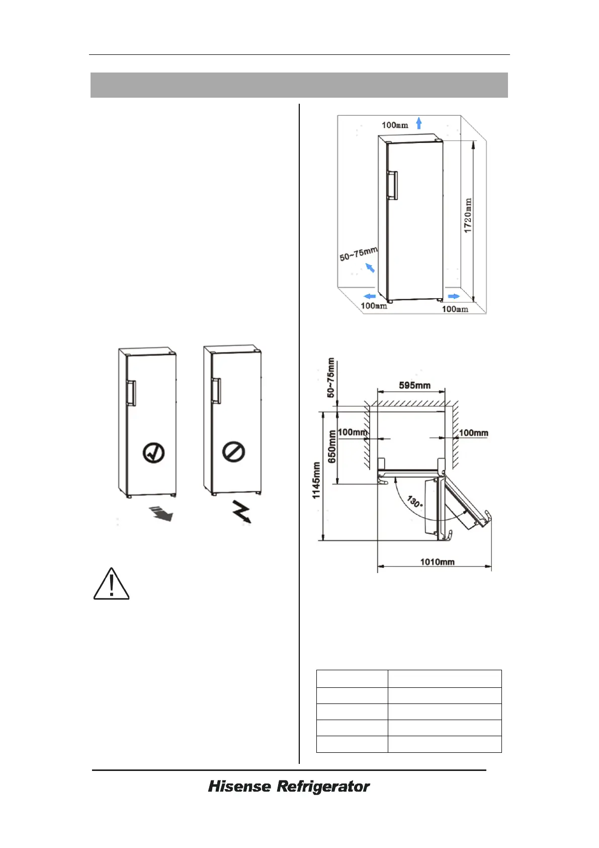 For proper installation, this refrigerator