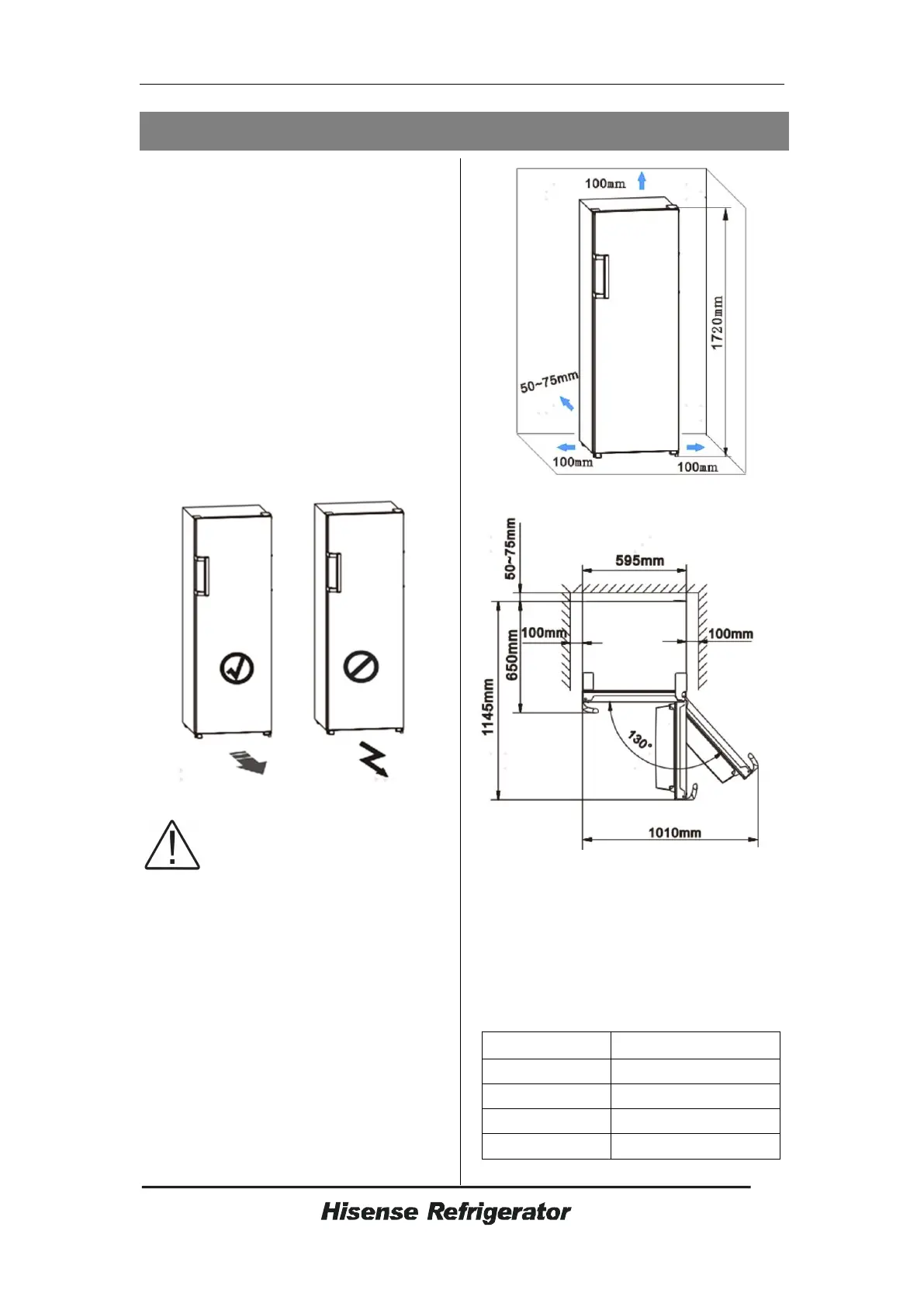 frigorifero deve essere posizionato su un
