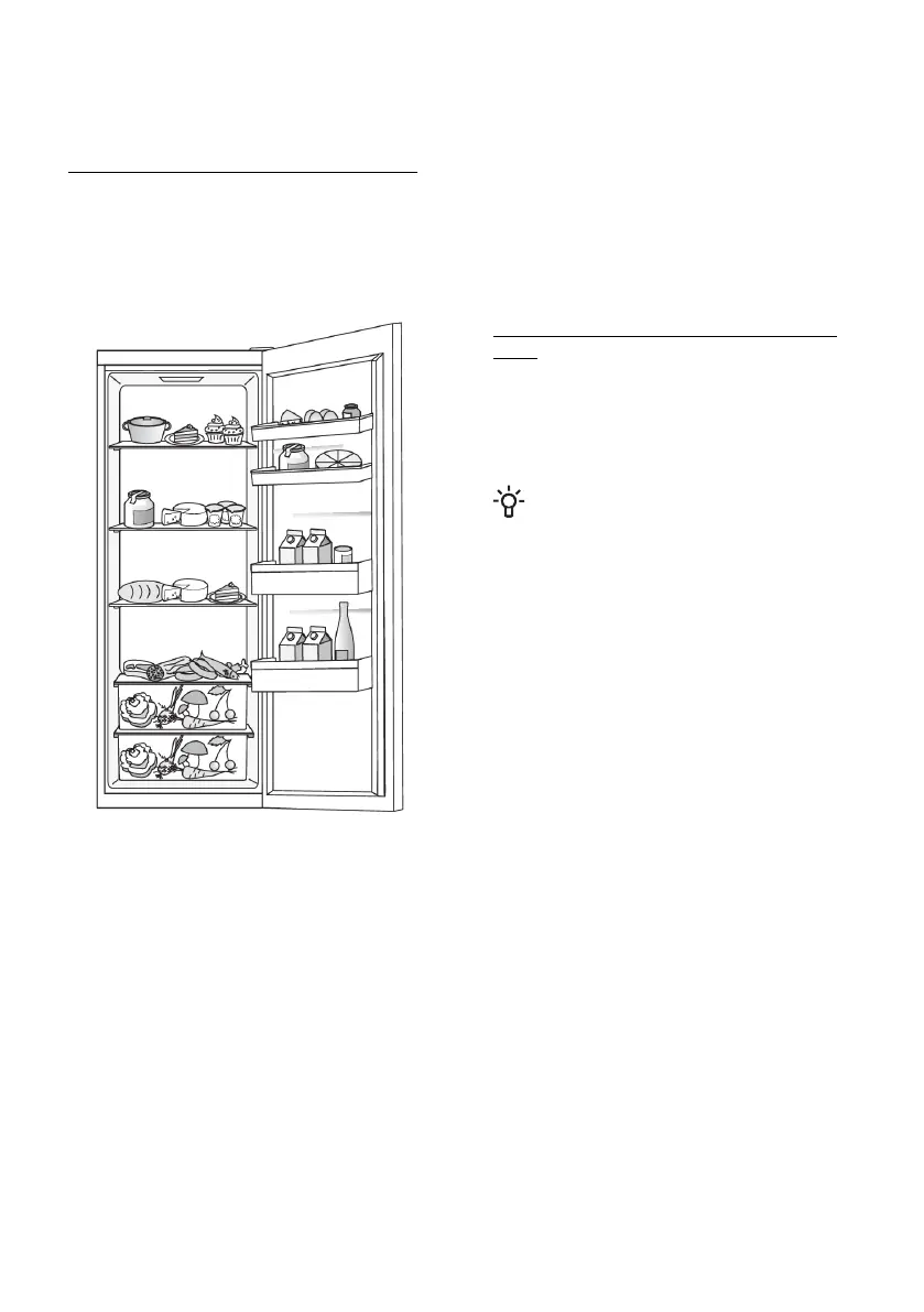 • Fruit and vegetable bin: fresh fruit, vegetables, salads, root vegetables, potatoes, onions, garlic,
