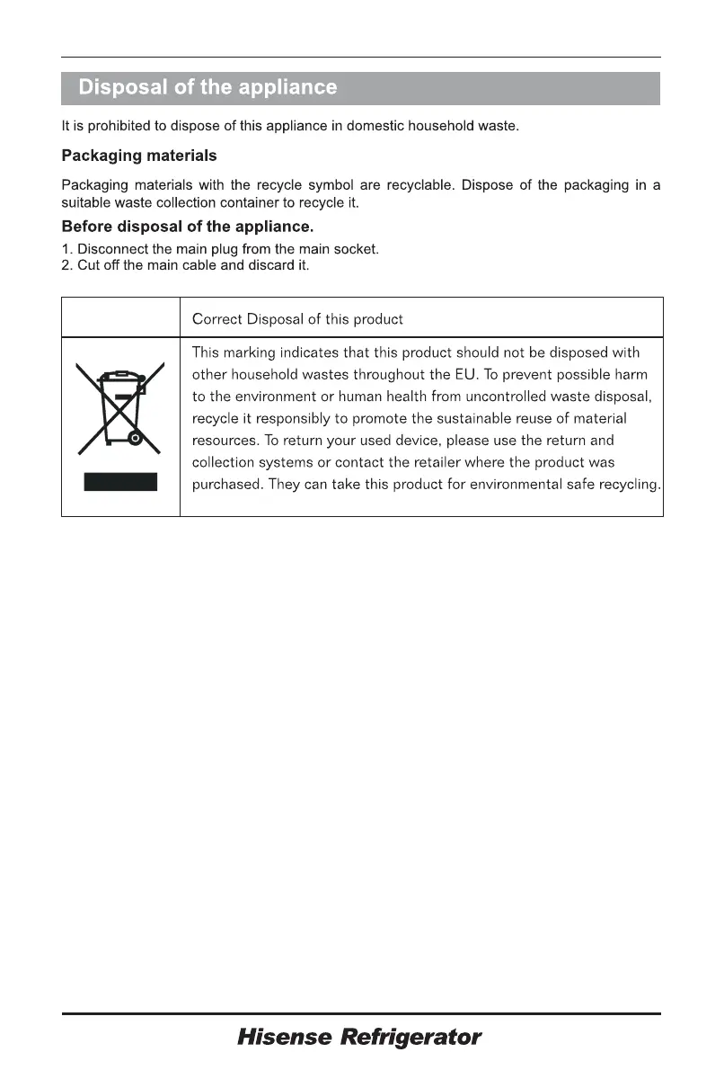Hisense RR154D4AW2 - Disposal of the Appliance; Correct Disposal of Product