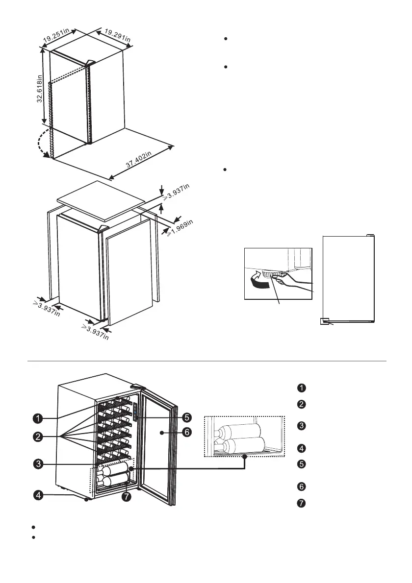 L’appareil peut contenir 34 bouteilles de vin pour la configuration A et 33 bouteilles pour la