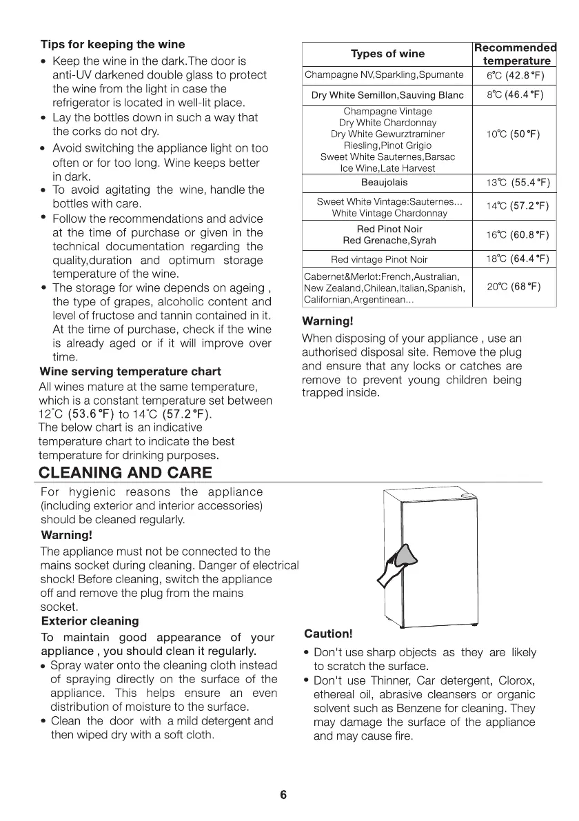 Hisense RR17D6ABE - Tips for Keeping the Wine; Cleaning and Care