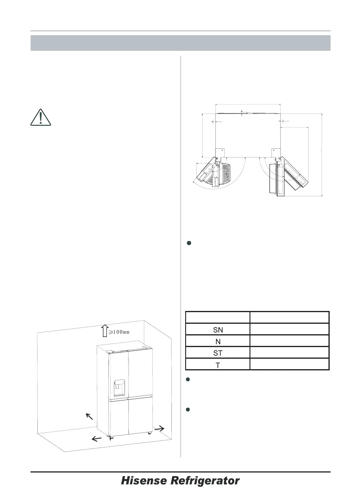 130° und die Kühlschranktür um 135°