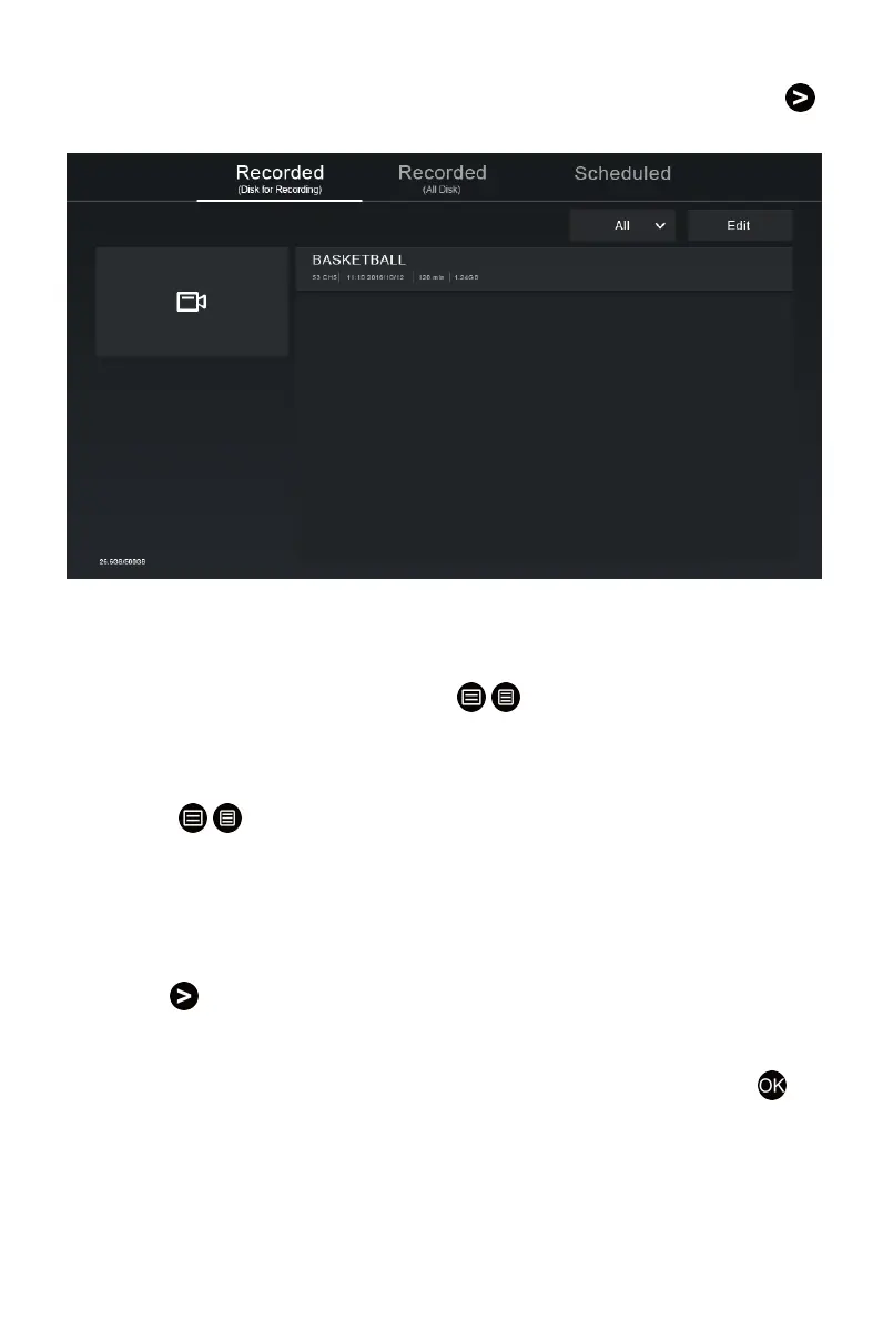 In Recorded (Disk for Recording), you can watch recorded programme