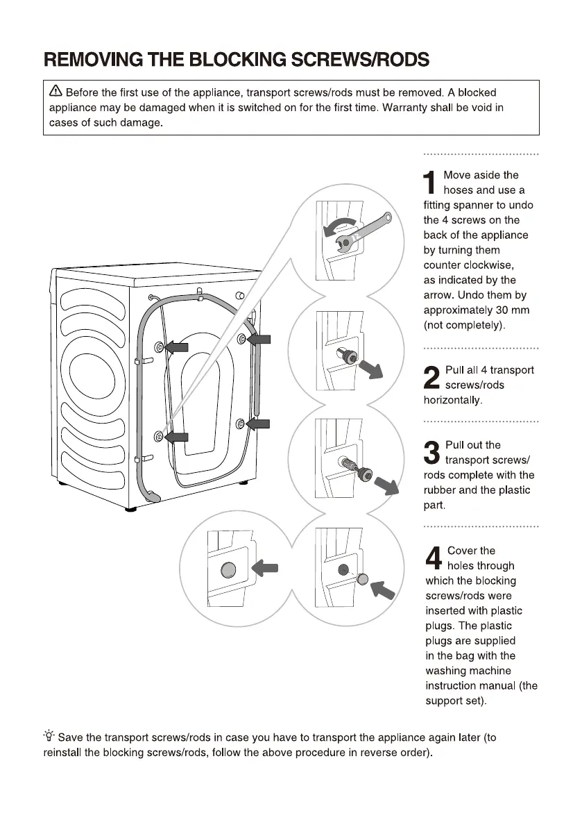 Hisense WF5S1245BB - REMOVING TRANSPORT BOLTS