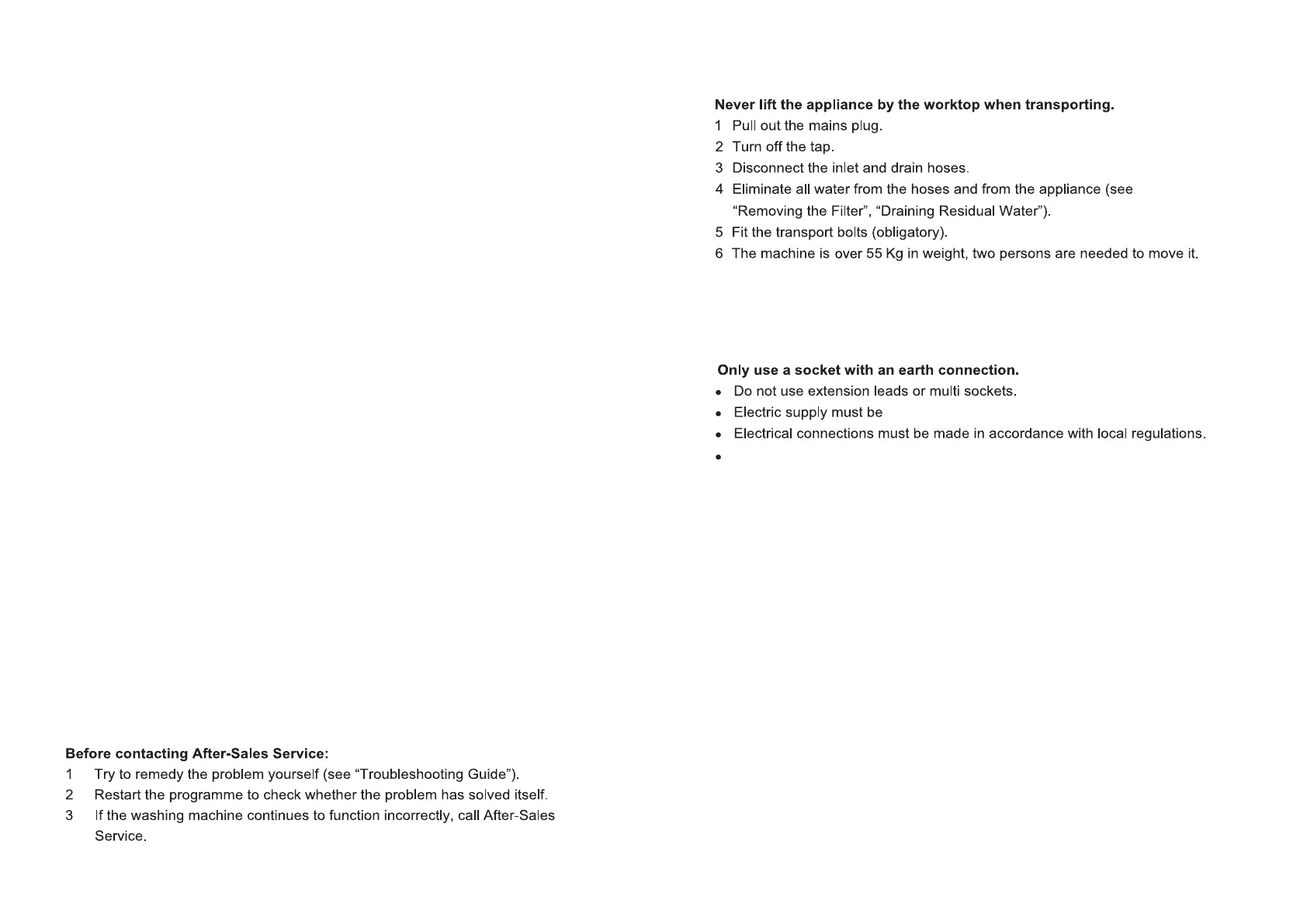 The electrical power cable must be replaced exclusively by a licensed electrician.