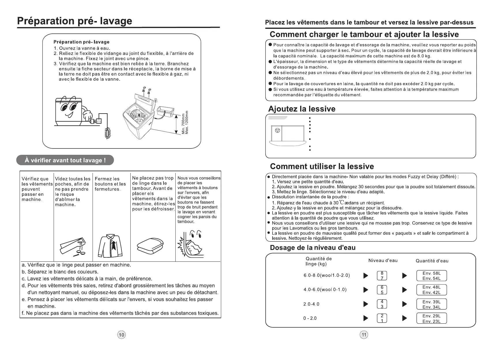 lessive en poudre/le détergent seront gaspillés, mais aussi l’eau débordera facilement.