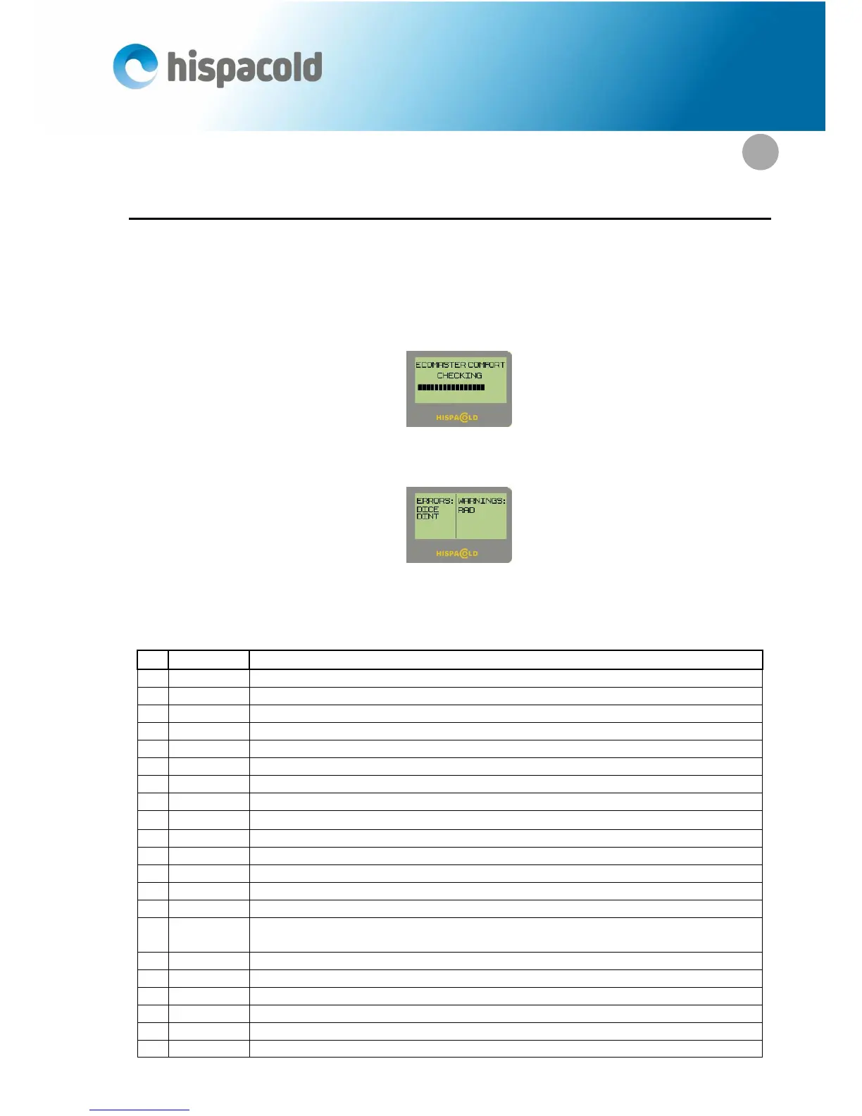 In the attached tables you can see the codes corresponding to each of the detectable problems: