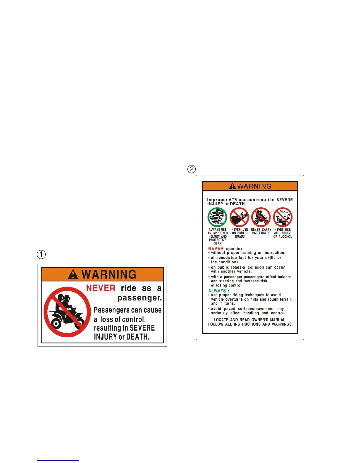 Never remove any labels from your ATV. If