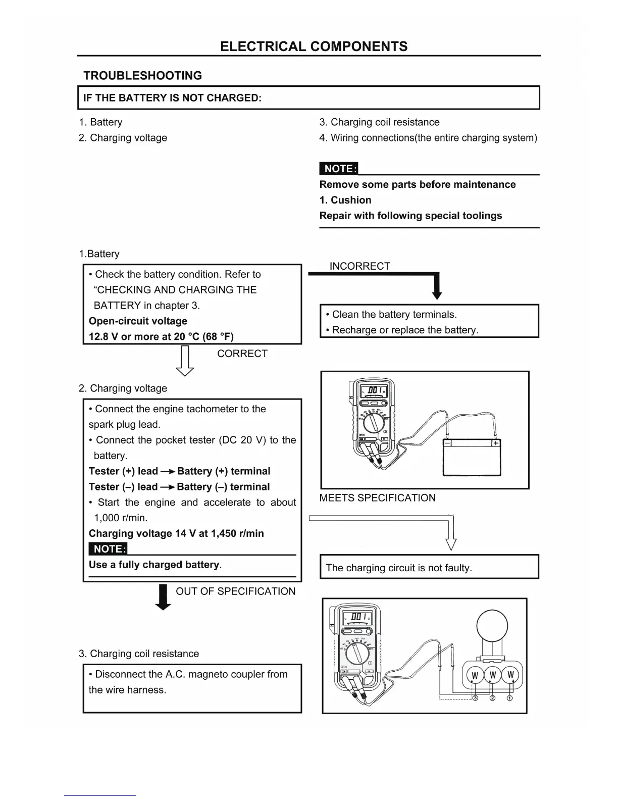 • Measure the charging coil resistance.