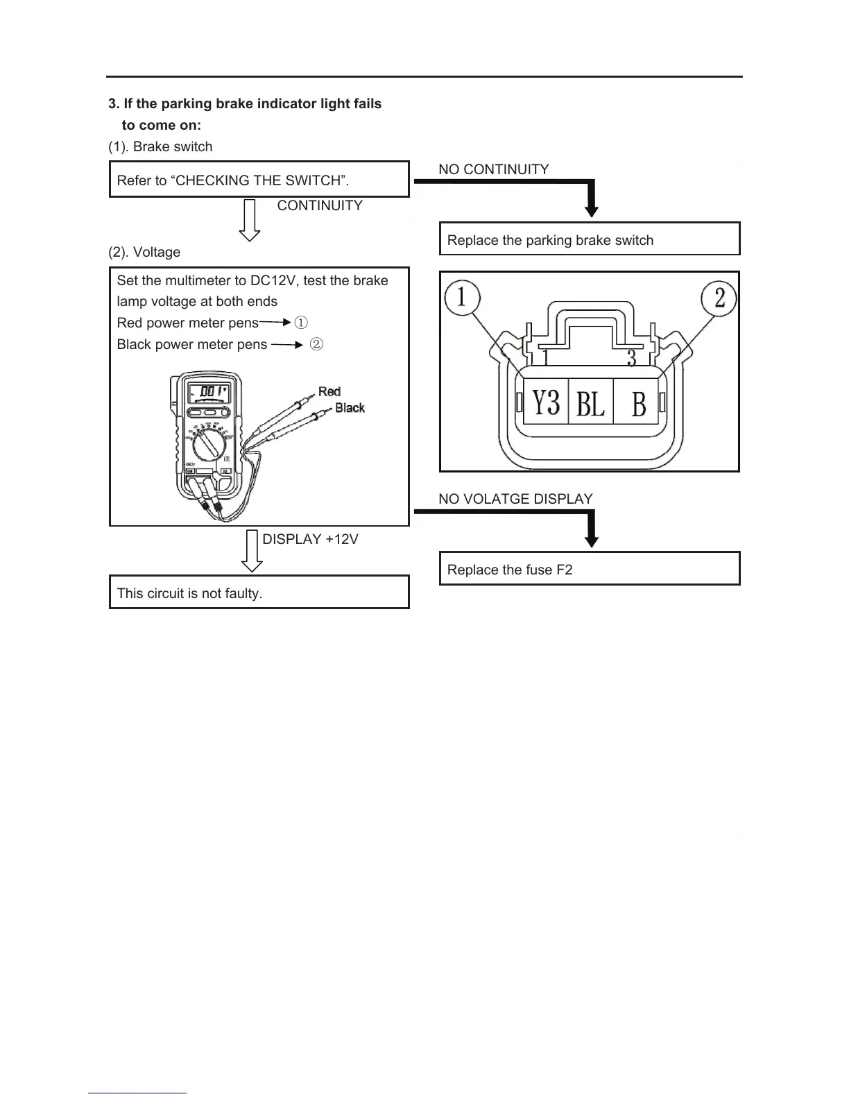 Set the multimeter to DC12V, test the brake