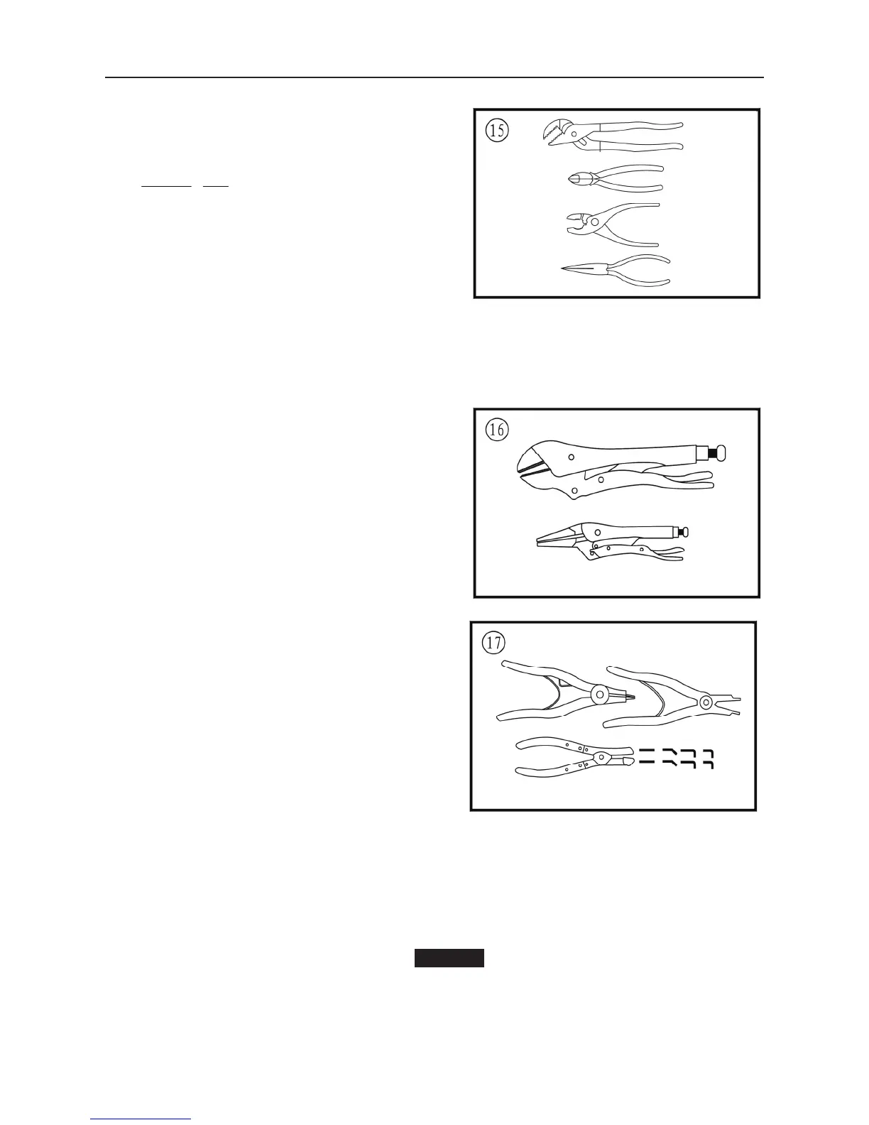 and Figure 16 show several types of useful pliers.