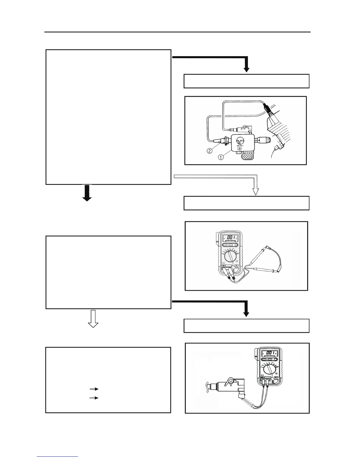 • Connect the pocket tester (Ω × 1) to the