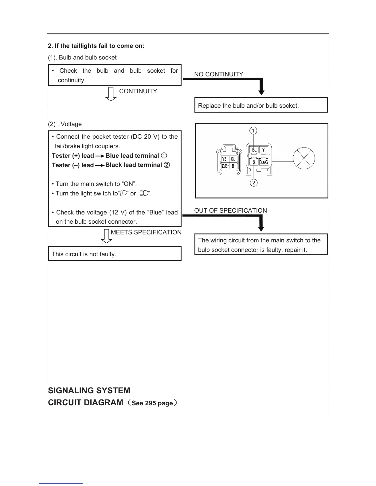 • Check the voltage (12 V) of the “Blue” lead