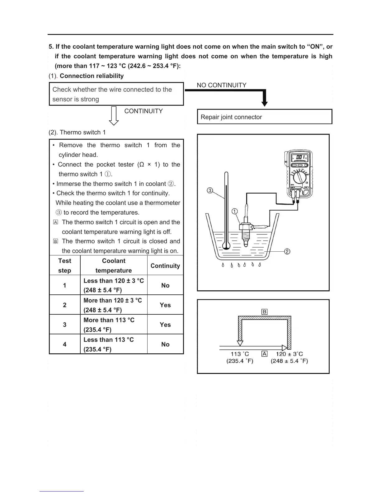 • Immerse the thermo switch 1 in coolant ②.
