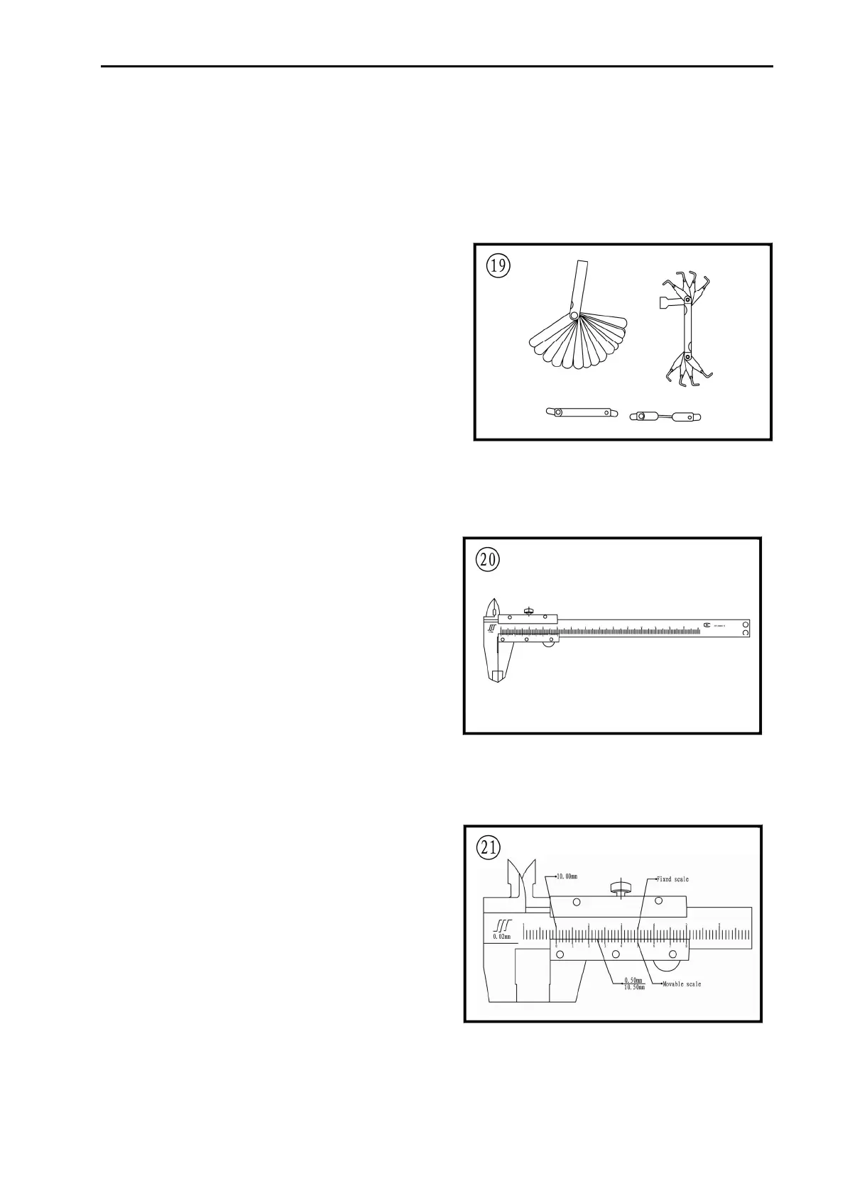 individual lines on the fixed scale equal 1 cm. The movable scale is marked in 0.05 mm (hundredth)