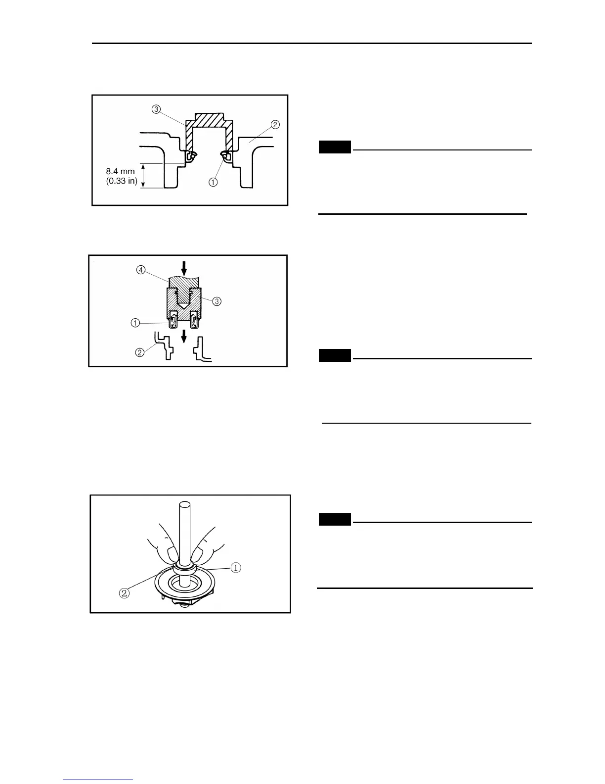 • Install the oil seal with a socket ③ that
