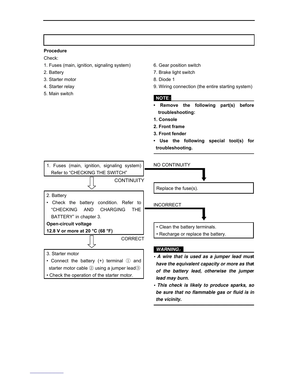 IF THE STARTER MOTOR FAILS TO OPERATE: