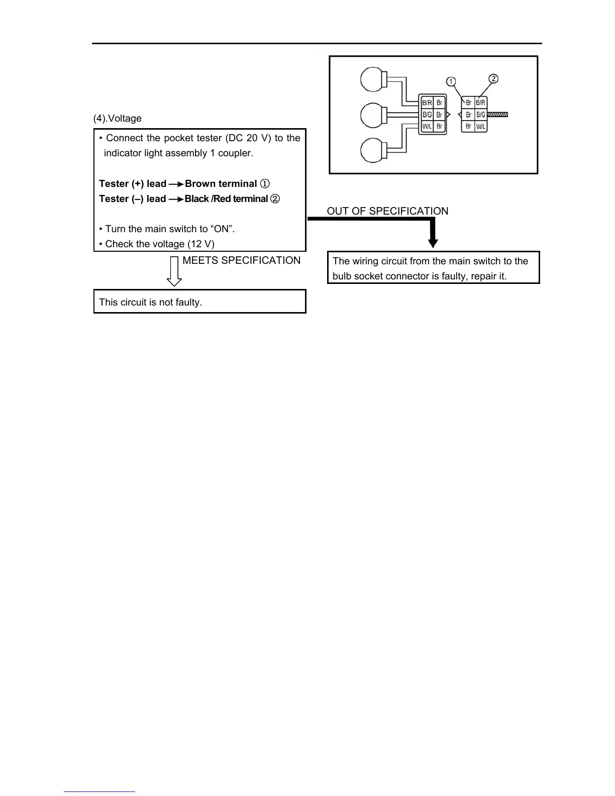• Connect the pocket tester (DC 20 V) to the