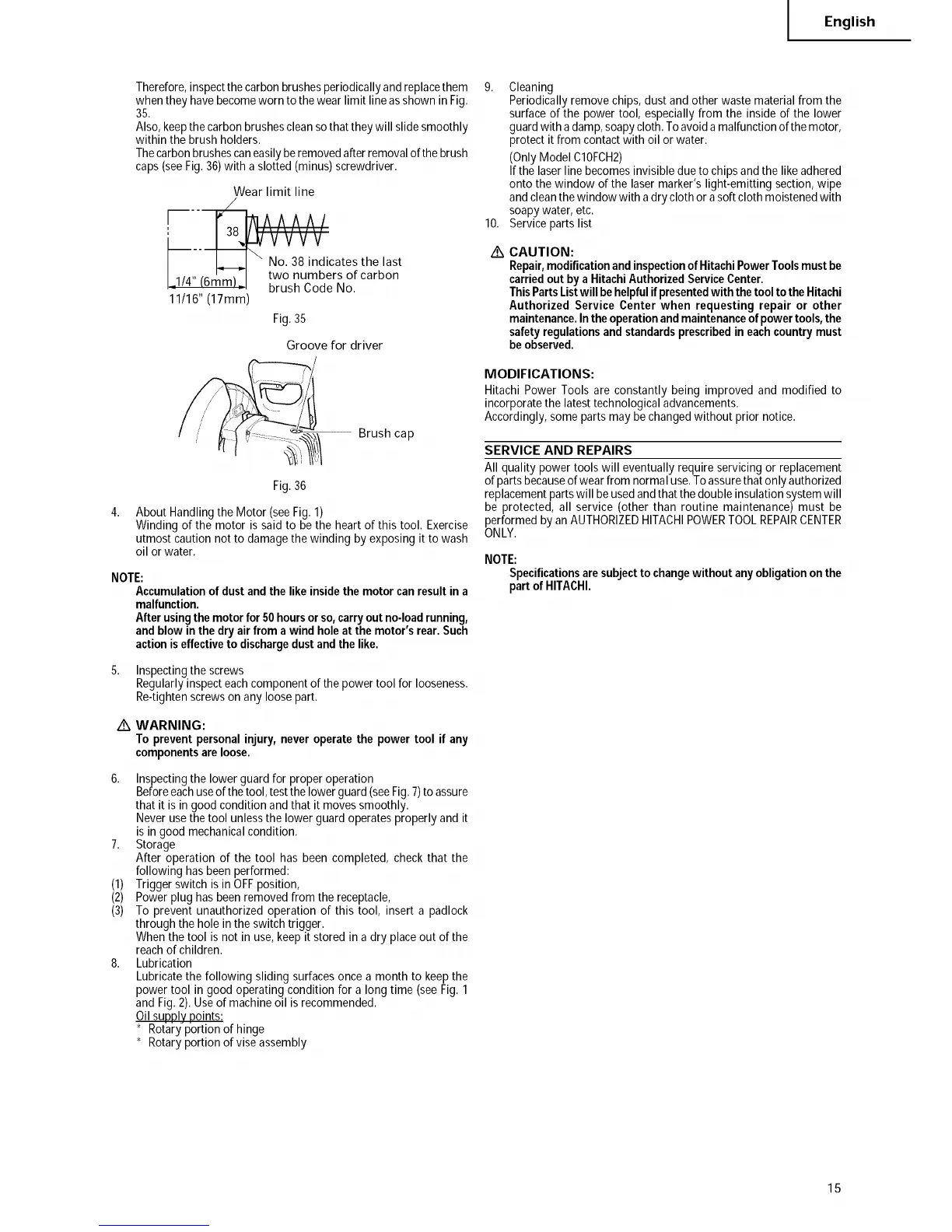Repair,modificationandinspectionofHitachiPowerToolsmustbe