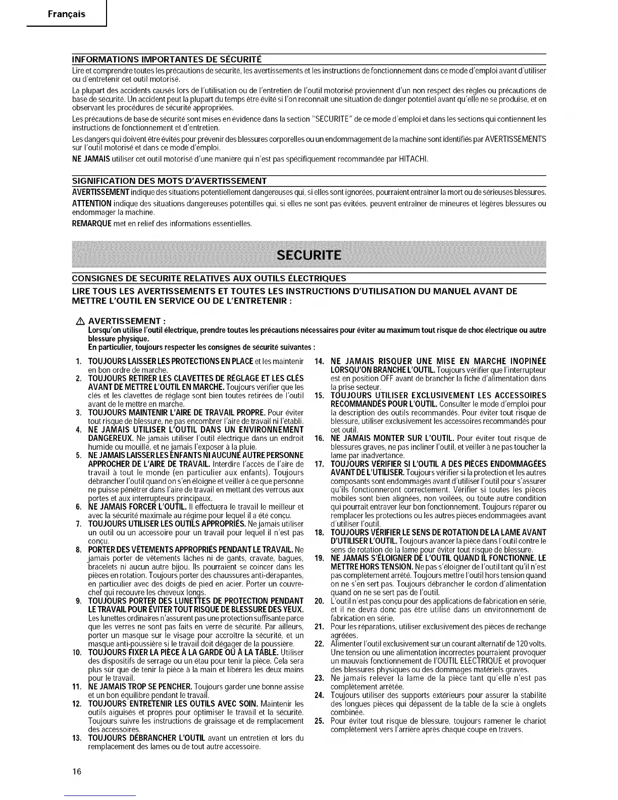 16. NE JAMAIS MONTER SUR L'OUTIL.Pour eviter tout risque de