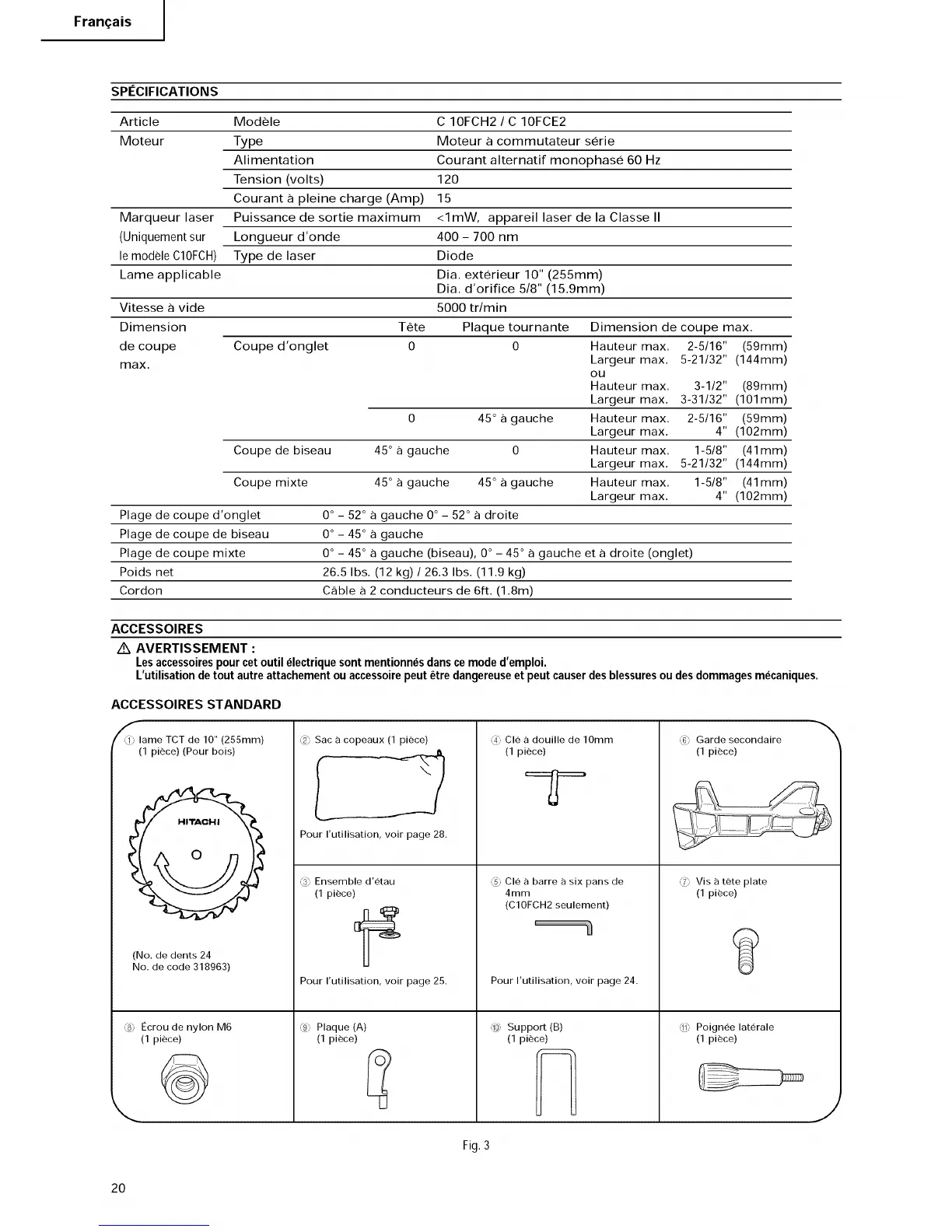 Lesaccessoirespourcetoutilelectrique sontmentionnesdanscemoded'emploi,