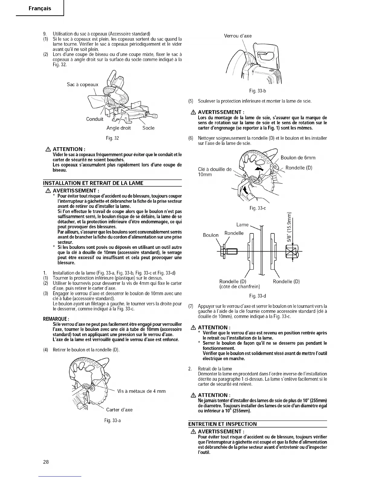 1. Installationde la lame (Fig.33-a,Fig. 33-b,Fig. 33-cet Fig. 33-d)
