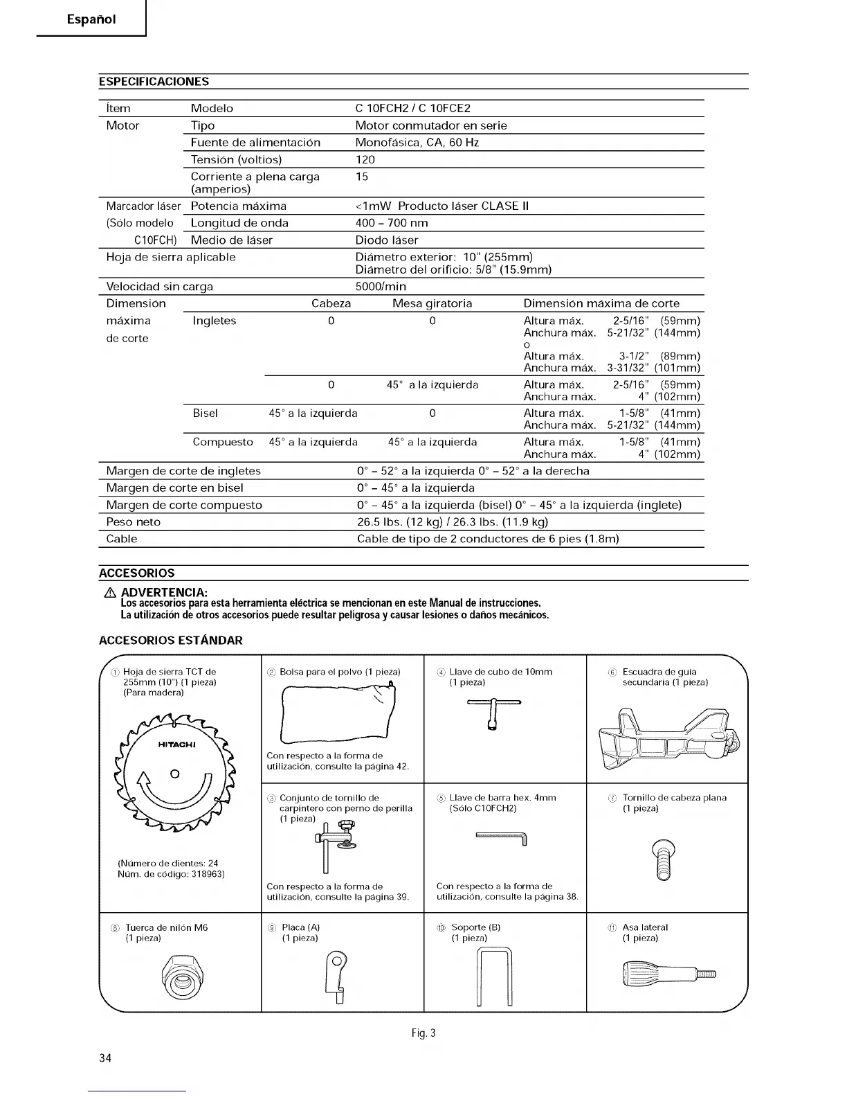 Los accesorios para esta herramienta electrica se mencionan en este Manual de instrucciones.