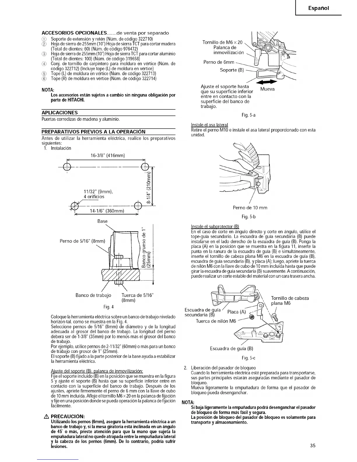 Utilizandolospernos(6mm),asegurela herramientaelectricaa un